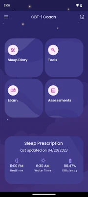CBT-i Coach is for people who are engaged in Cognitive Behavioral Therapy for Insomnia with a health provider, or who have experienced symptoms of insomnia and would like to improve their sleep habits. The app will guide you through the process of learning about sleep, developing positive sleep routines, and improving your sleep environment. It provides a structured program that teaches strategies proven to improve sleep and help alleviate symptoms of insomnia.